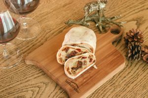 ドライフルーツ、ナッツ、カーブドッチの赤ワインで煮た無花果をたっぷり入れたシュトーレンです。