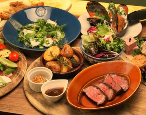 メインが国産牛ステーキ。クリスマス限定デザートが付いた7品のビストロコース。