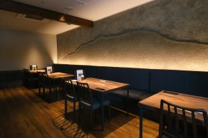 レストラン湯楽はシックでゆったりとした内装に