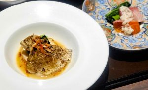 3月:日本海のどぐろ塩焼きと春野菜蒸し 白ワイン香る海老味噌たれ膳